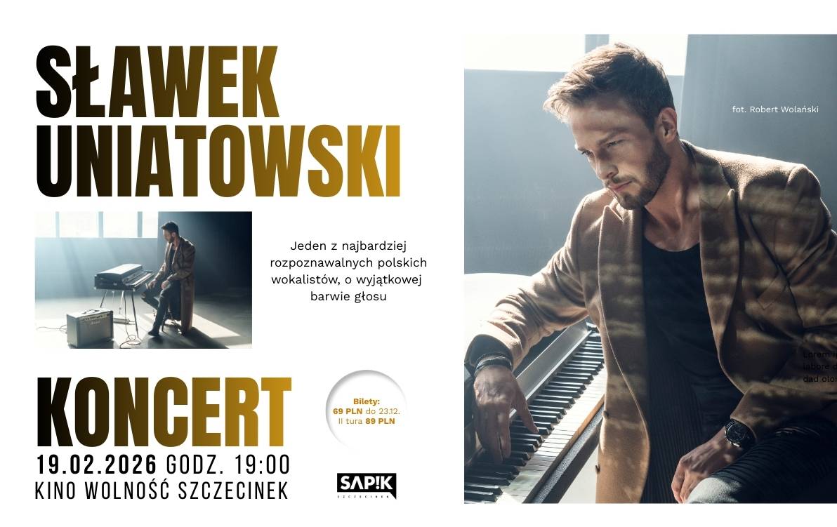 Sławek Uniatowski to jeden z najbardziej charyzmatycznych i cenionych polskich wokalistów, obdarzony niepowtarzalną barwą głosu i ogromną wrażliwością artystyczną. W Szczecinku wystąpi na żywo w Kinie Wolność 19 lutego (godz. 19). To będzie nastrojowy, pełen emocji koncert