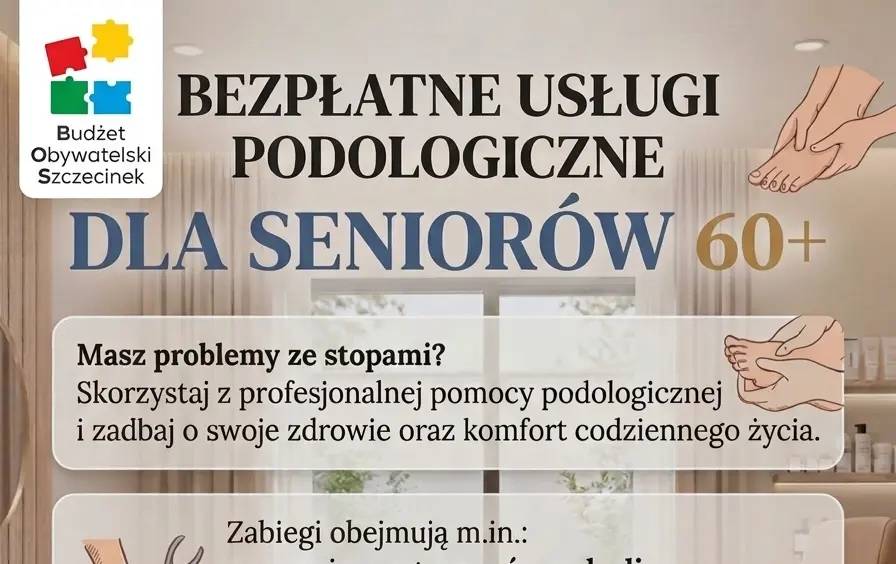 Mieszkańcy Szczecinka, którzy ukończyli 60. rok życia, mogą skorzystać z darmowych usług podologicznych realizowanych w ramach Budżetu Obywatelskiego Miasta Szczecinek na rok 2026.