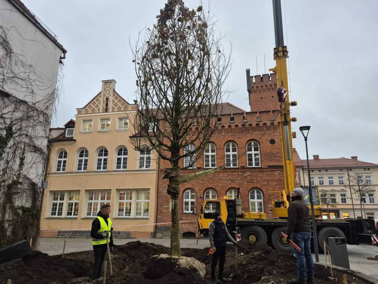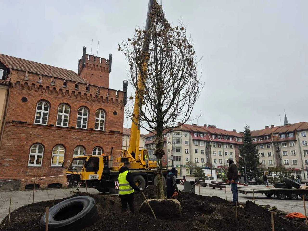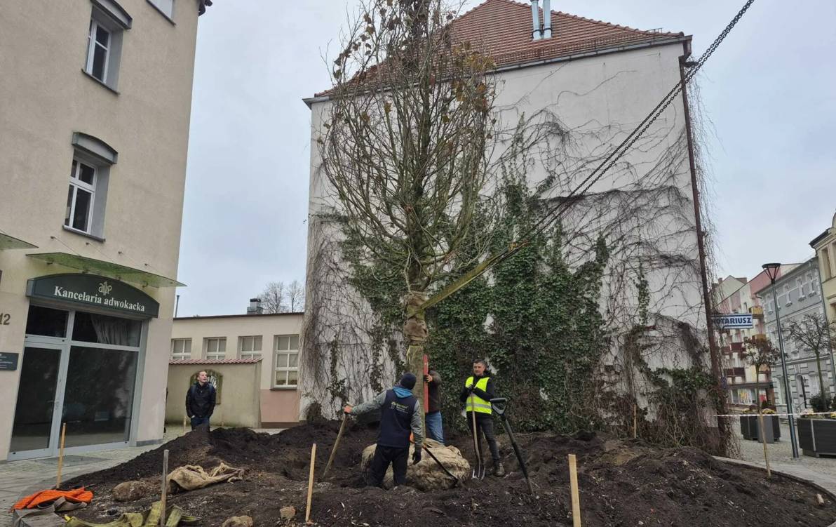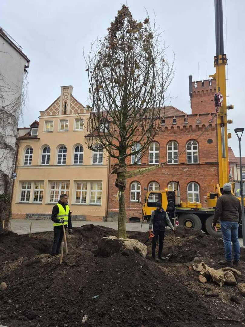 Ale to był dzień... Zaraz po choince na plac przed szczecineckim ratuszem wjechał okazały platan klonolistny.