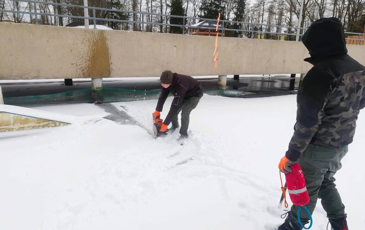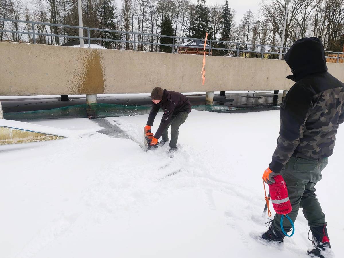 Pracownicy Ośrodka Sportu i Rekreacji w Szczecinku wycięli przeręble przy masztach podtrzymujących linę wyciągu do nart wodnych oraz w bezpośredniej okolicy pomostu startowego. Wejście w te rejony jeziora Trzesiecko jest zabronione.