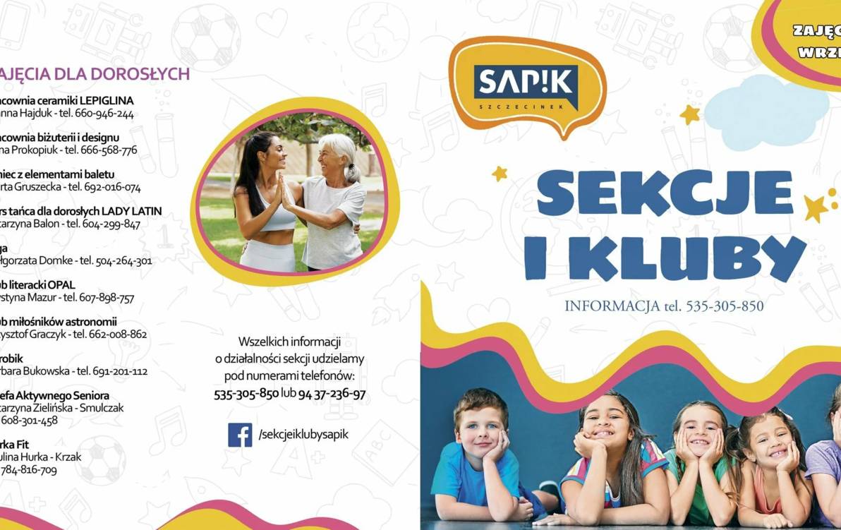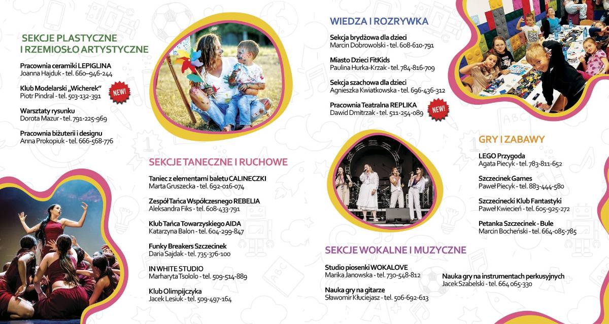 Dodajmy, że obok klubów i sekcji działających do lat – jak Klub Tańca Towarzyskiego Aida czy Zespołu Tańca Współczesnego Rebelia – są nowości. Działalność inauguruje np. Pracownia Teatralna Replika czy reaktywuje się Klub Modelarski Wicherek z nowym instruktorem.