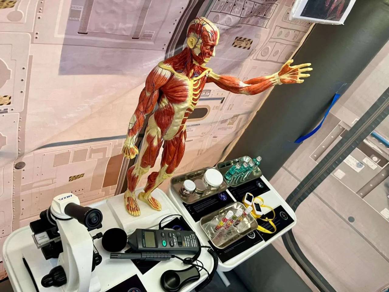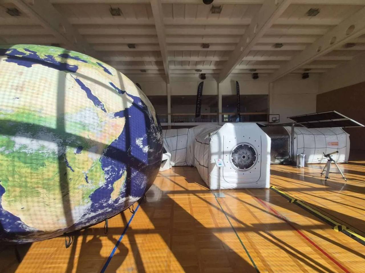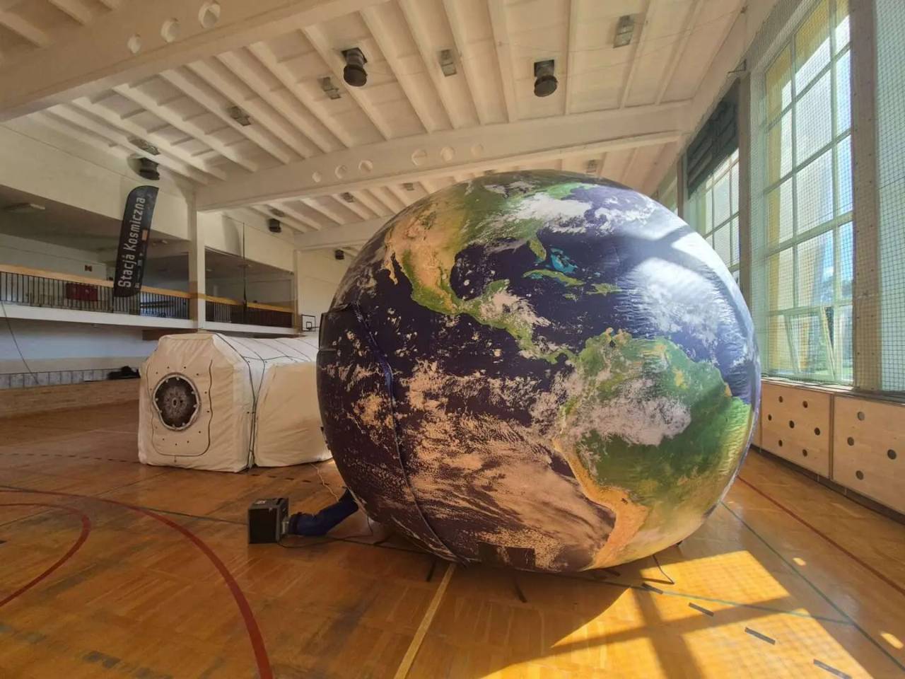 Na środku hali sportowej „siódemki” stanęła wiernie odwzorowana – w skali 1:3 - makieta wnętrza Międzynarodowej Stacji Kosmicznej ISS. W takiej swoje badania przeprowadzał niedawno Sławosz Uznański-Wiśniewski, drugi Polak w Kosmosie, uczestniczący w misji Ignis.