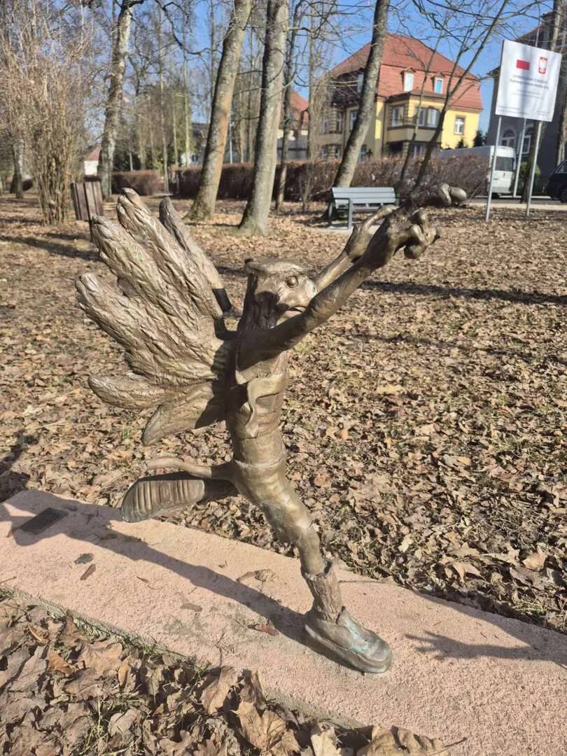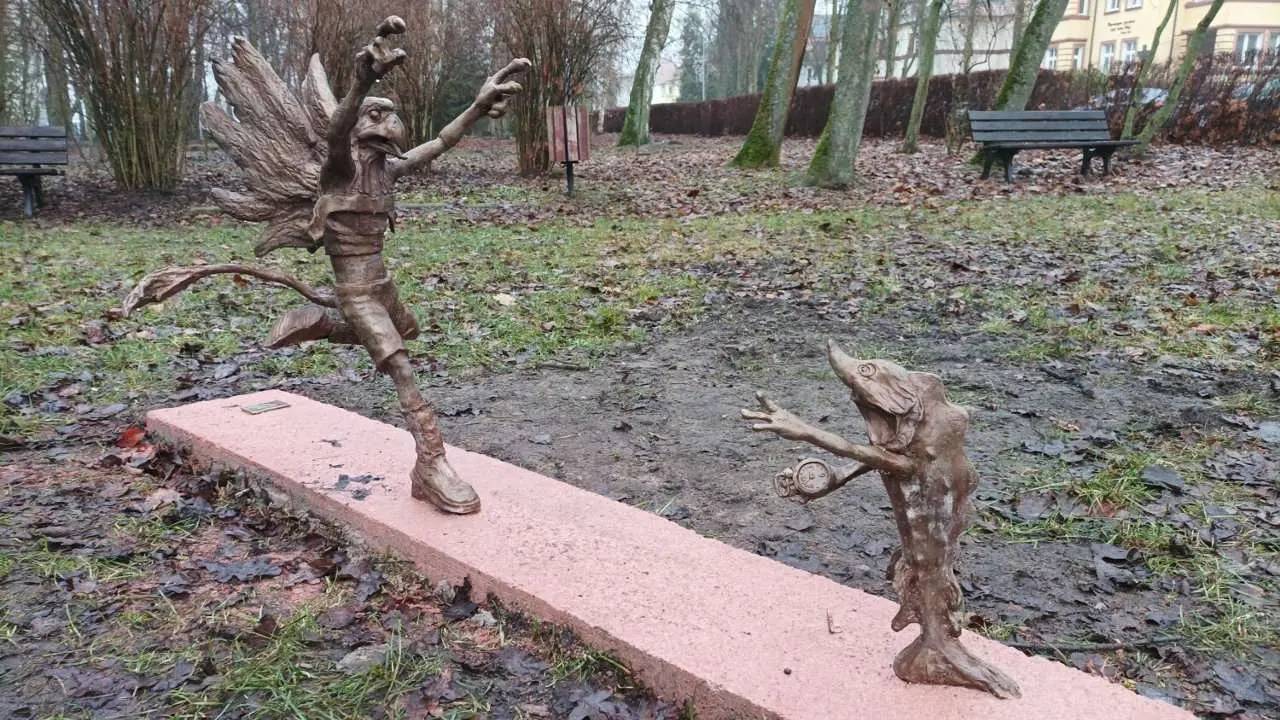 W ostatnich dniach nieznany sprawca uszkodził rzeźbę gryfa i jesiotra koło stadionu miejskiego. To miejsce, w którym m.in. co sobotę startują amatorzy biegania z park runu, a więc figurki nawiązują do sportu: gryf mija metę w geście triumfu, a jesiotr mierzy mu czas stoperem.