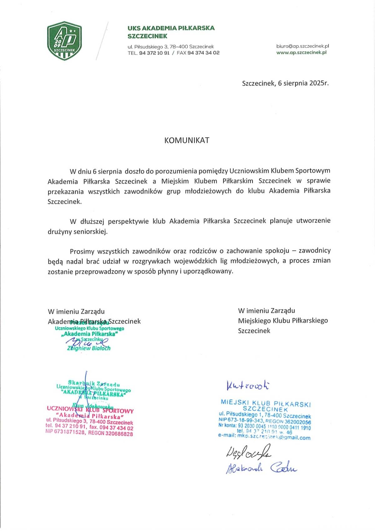 – Doświadczenie trenerów i działaczy oraz oddanie rodziców zawodników AP, która istnieje już ponad 16 lat kształcąc młodych zawodników i dbając o ich wszechstronny rozwój, gwarantują, że ich przyszłość będzie w dobrych rękach – Maciej Makselon dodaje, że młodsi piłkarze będą mogli kontynuować kariery także, gdy przestaną być juniorami.