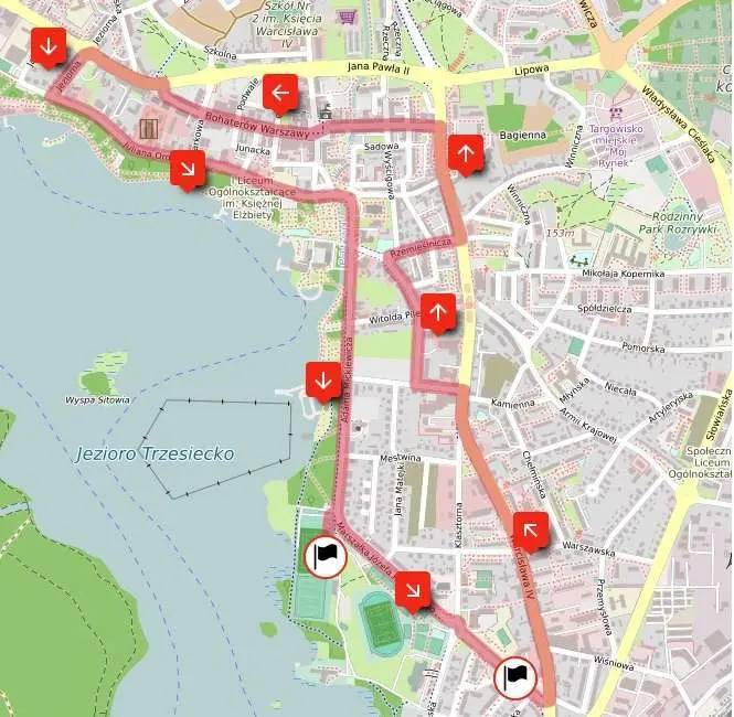 Trasa biegu poprowadzi najpierw ulicami Piłsudskiego i księcia Warcisława IV. Następnie, na zmodyfikowanym odcinku, biegacze skręcą w ulicę Kamińskiego i pobiegną dalej ulicami Limanowskiego oraz Rzemieślniczą, by następnie wrócić na ulicę Wyszyńskiego. Dalsza część trasy pozostaje bez zmian – zawodnicy pobiegną deptakiem Bartoszewskiego, przez plac Wolności i ulicą Bohaterów Warszawy aż do ulicy Kościuszki. Następnie skręcą w Jasną, pobiegną ulicami Ordona, 3 Maja i Mickiewicza, by ostatecznie dotrzeć na stadion miejski.