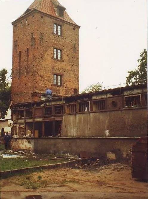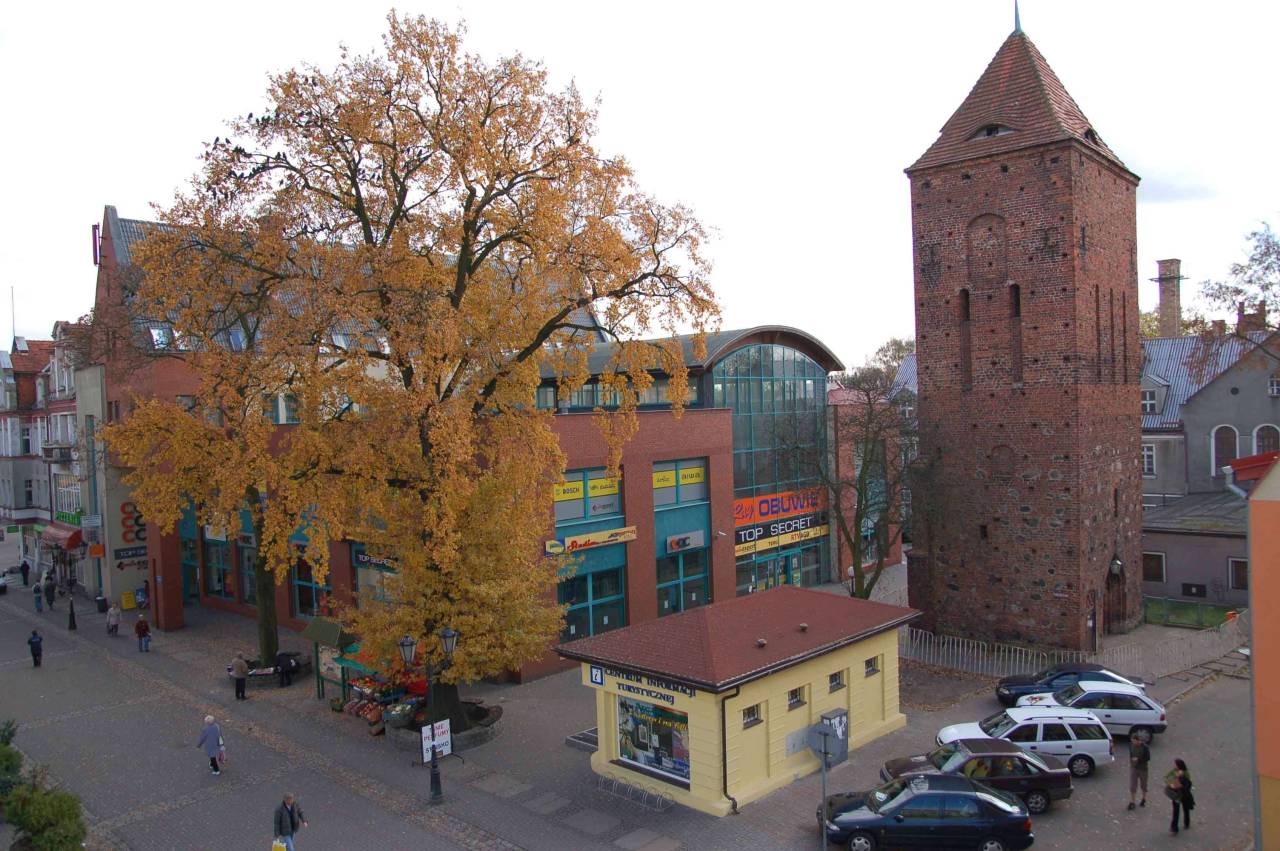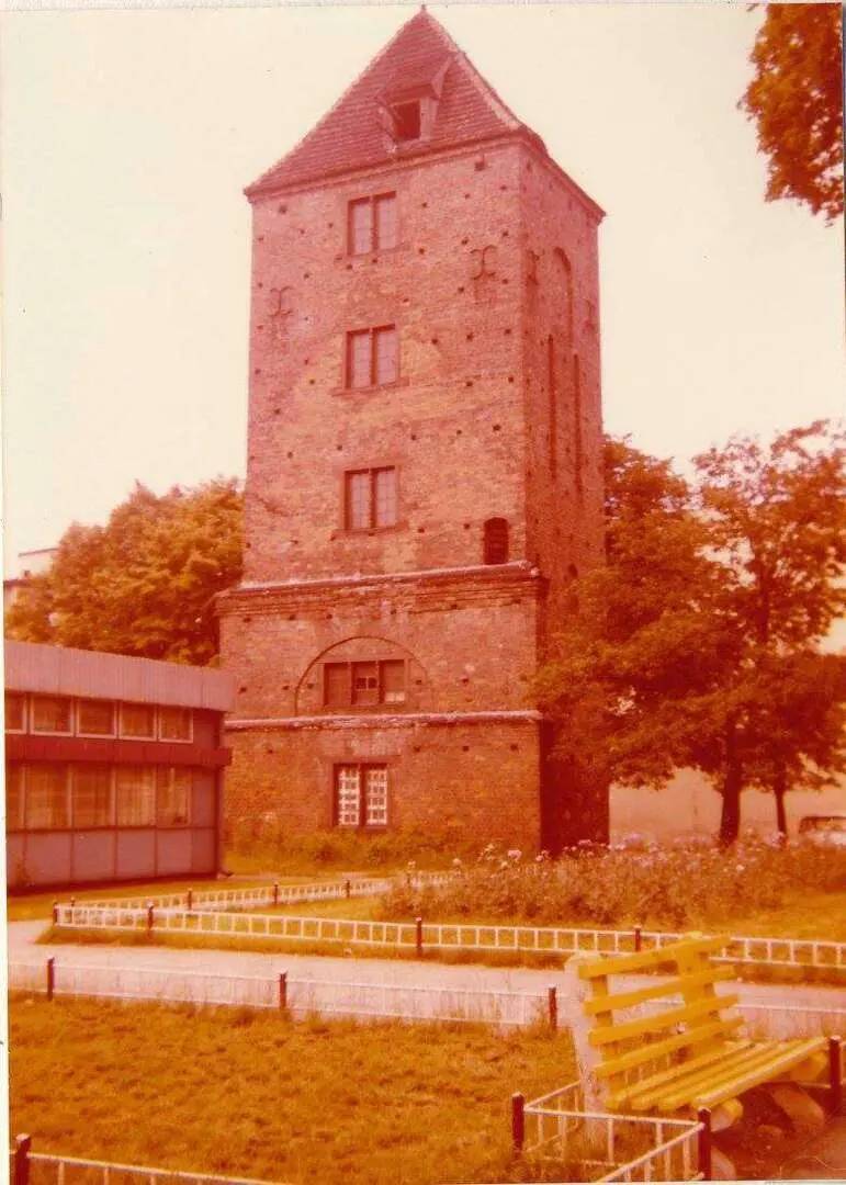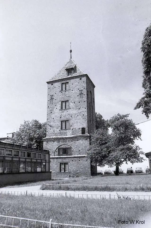 No dobrze, ale wróćmy do pralni przy muzealnej, pokościelnej wieży św. Mikołaja. Zbudowano ją bodajże w latach 60. XX wieku na placyku powstałym po zburzeniu nawy kościoła w roku 1905. Miejsce to przed wojną nazywało się Butter Markt – Rynek Maślany, co zapewne oznaczało miejsce handlu nabiałem. W okresie międzywojennym był to już ładnie urządzony skwerek wytyczany wieżą św. Mikołaja, budynkiem dawnego Gimnazjum księżnej Jadwigi z nieistniejącym dziś pawilonem mieszczącym biura i magazyny muzeum oraz okazałymi kamienicami na wschodniej pierzei placyku (też już ich nie ma).