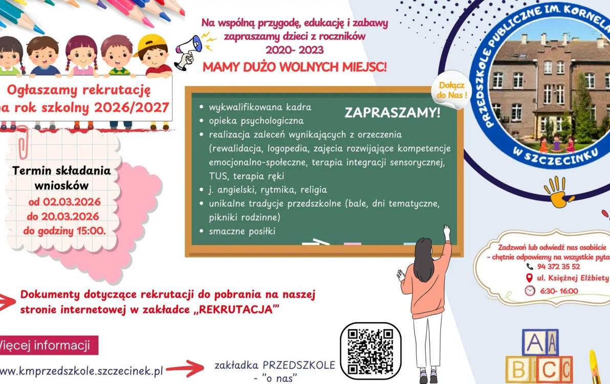 Już wkrótce rusza rekrutacja do Publicznego Przedszkola im. Kornela Makszyńskiego w Szczecinku.