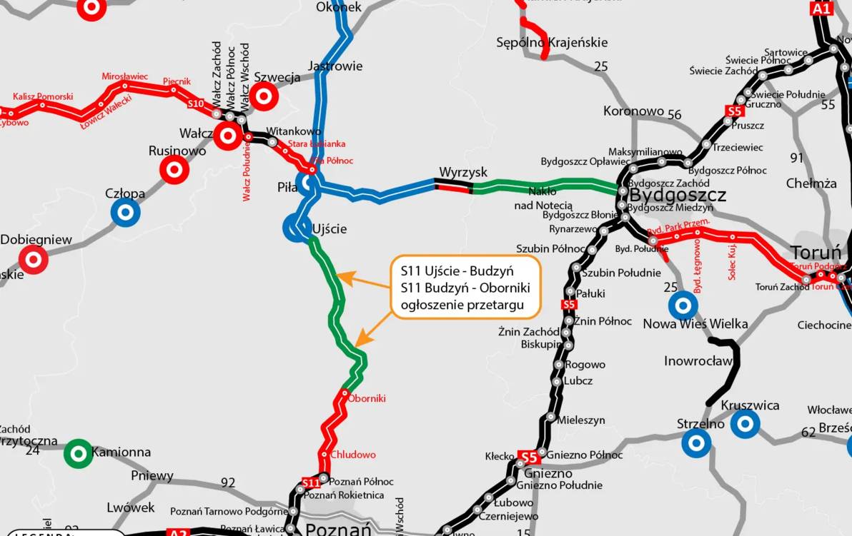 W sumie między Ujściem a Obornikami powstaną 43 kilometry (w rozbiciu na odcinki Ujście – Budzyń i Budzyń – Parkowo) trasy ekspresowej S11 – łącząc się na południu z powstającą obwodnicą Obornik. Na północy zaś z obejściem Ujścia do Piły – dla tego fragmentu S11 wydanie decyzji środowiskowej jest planowane na rok 2026.