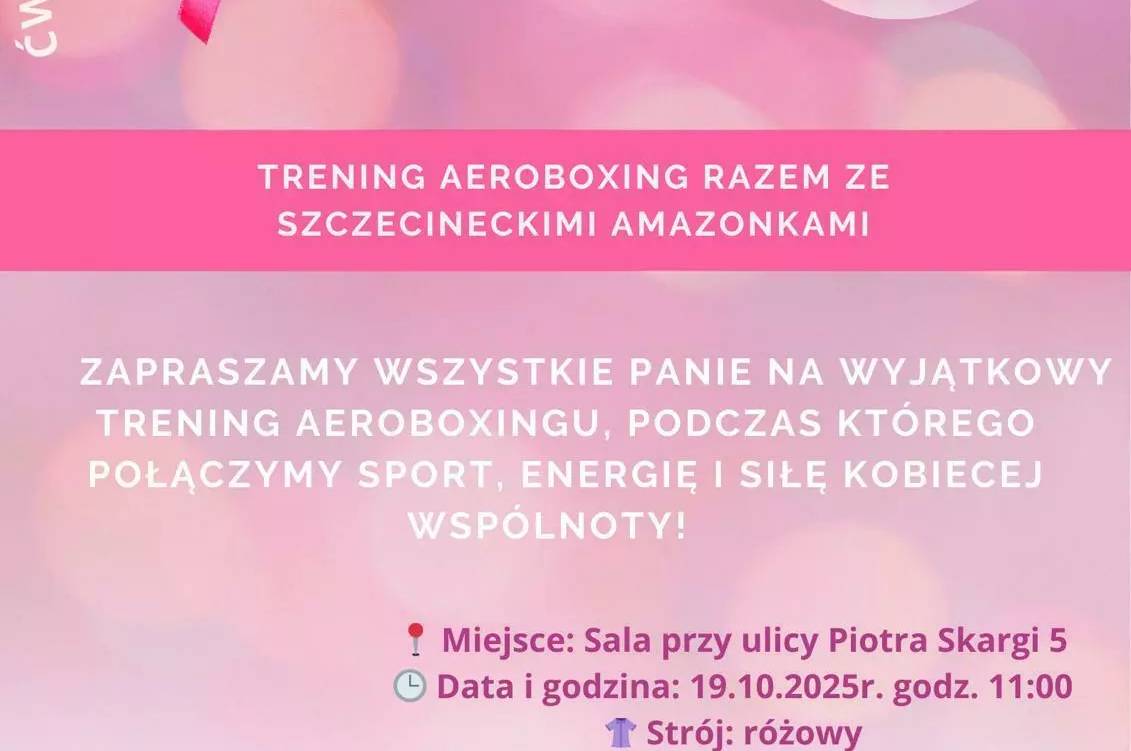 AreoBoxing to połączenie sportu, energii i siły kobiecej wspólnoty. W trakcie spotkania głos zabiorą Szczecineckie Amazonki, które w krótkiej prelekcji opowiedzą o świadomości raka piersi oraz znaczeniu regularnego samobadania. To ważny czas, by zadbać nie tylko o formę fizyczną, ale także o zdrowie i profilaktykę.