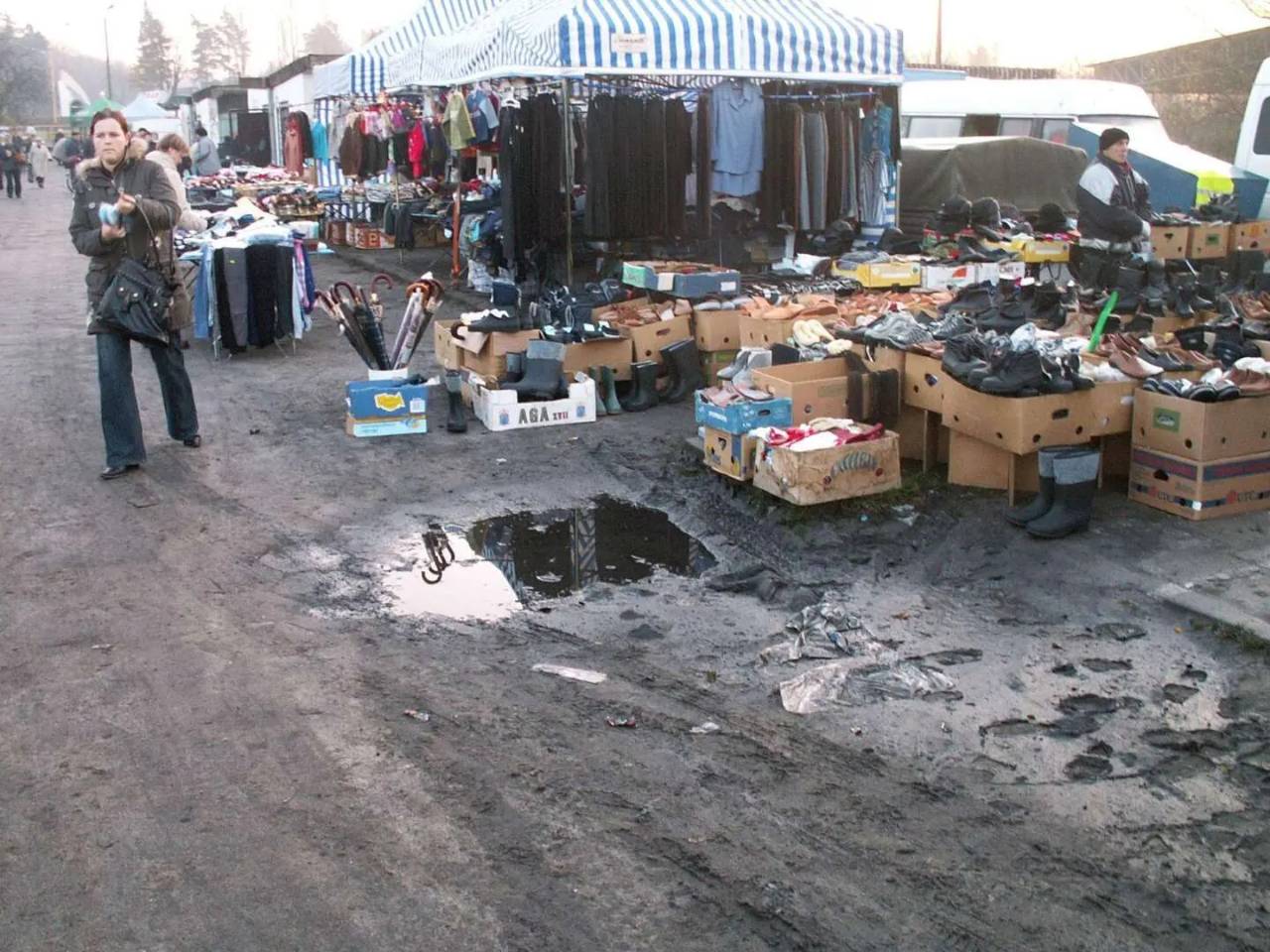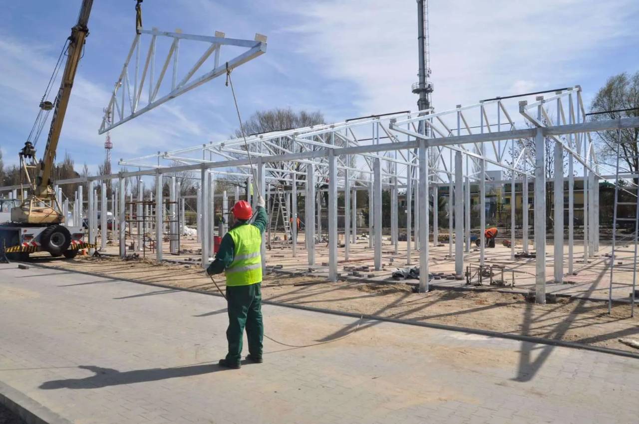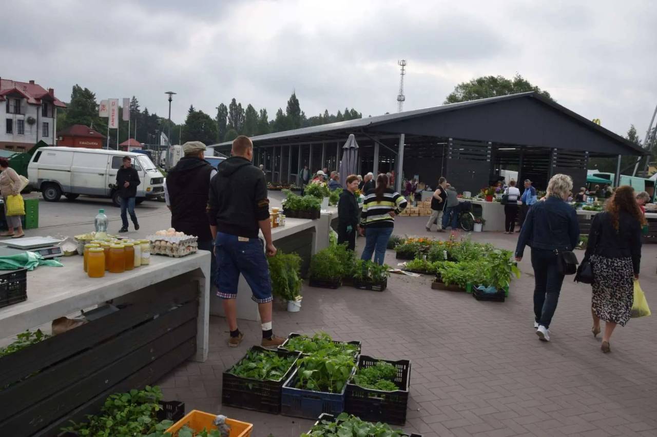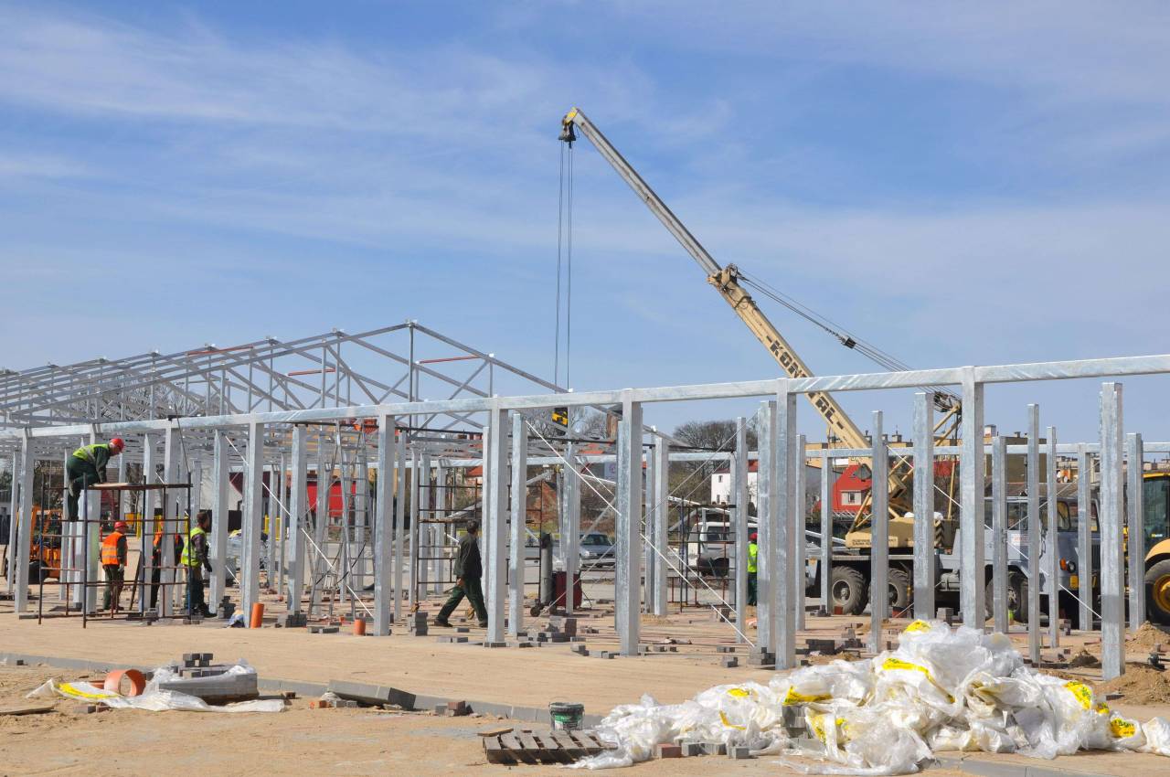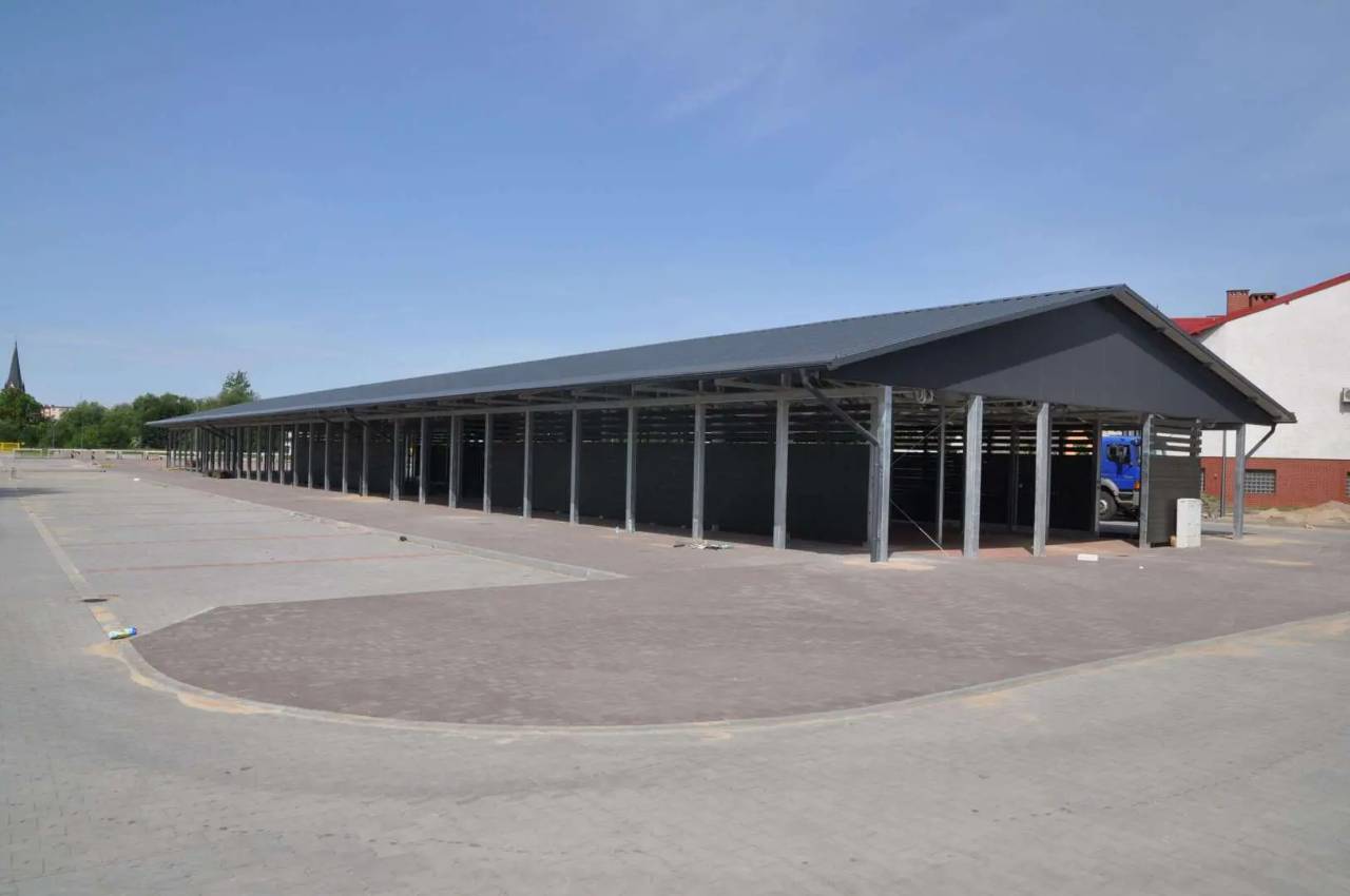 Zamiast obskurnych, walących się pawilonów rodem z PRL jest dziś estetyczna, zadaszona i częściowo zasłonięta wiata z bieżącą wodą, prądem i oświetleniem. Krzywą trylinkę i klepisko tonące po deszczu w błocie zastąpił polbruk. Całość jest ogrodzona i oświetlona. Powstały porządnie sanitariaty, jest oczywiście parking. Są miejsca postojowe na handel płodami rolnymi z pojazdów, 190 stoisk handlowych - z czego większość pod dachem. Na zdjęciu powyżej budowa targowiska - wiosna 2014 roku.