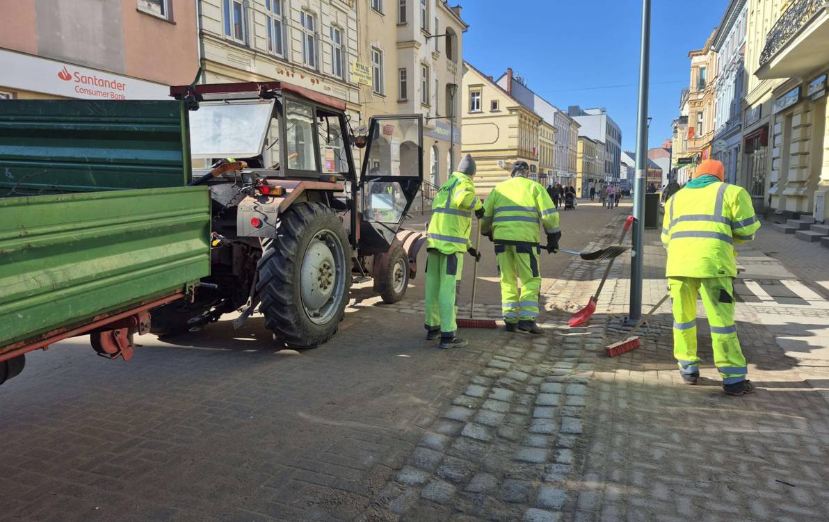 Powoli „odkopujemy” się po zimie. Ekipy Przedsiębiorstwa Gospodarki Komunalnej sprzątają z ulic Szczecinka piasek.