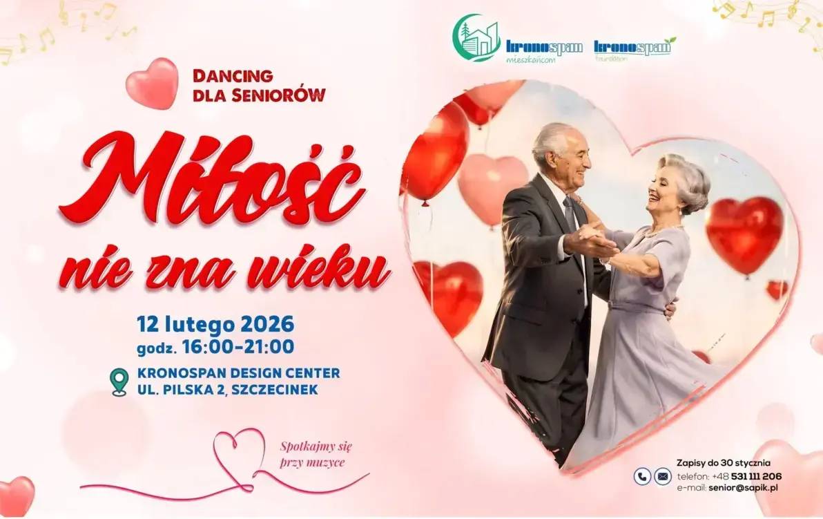 Już dziś zapraszamy seniorów ze Szczecinka i okolic na walentynkowy bal organizowany dzięki wsparciu Kronospan Fundation we współpracy z Samorządową Agencją Promocji i Kultury oraz miasta Szczecinek. Trwają zapisy.