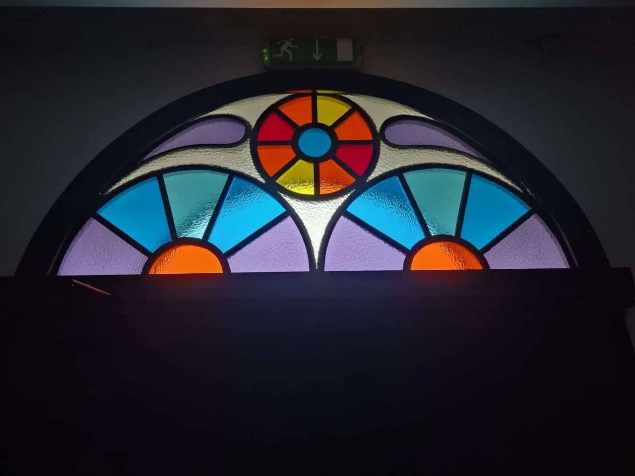 Fronton portalu drzwiowego ratusza w Szczecinku był o tej pory wypełniony ramą z białym szkłem. Teraz wypełniono je tym samym wzorem, ale z kolorowymi szybkami. Witraż autorstwa Stanisława Smolaka prezentuje się stylowo.
