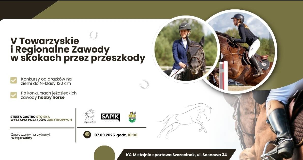 Już w niedzielę (7 września) zapraszamy na V Towarzyskie i Regionalne Zawody w Skokach przez Przeszkody. Gospodarzem jest Stajnia Sportowa K&M w Szczecinku.